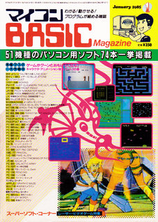 CATEGORYMAGAZINE マイコンBASICマガジン 1985年1月号 書誌データ 通巻号数45 発行日1985年1月1日 掲載プログラム一覧 SUPER MUSICIAN 音楽 DUST CLEANER Ⅱ アクション THE ULTLAMAN アクション