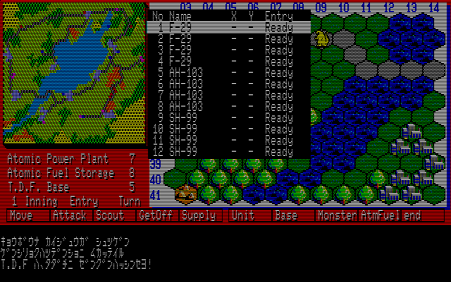 T.D.F.という地球防衛軍対怪獣のウォーシミュレーション。マップは10種類用意されています。