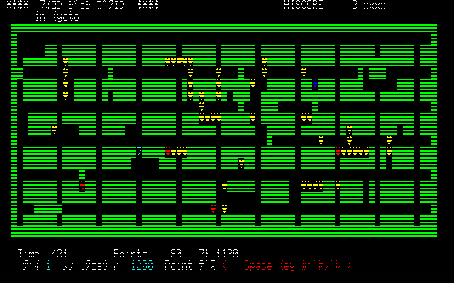 舞魂女子学園を支配する番長、サルマワシの手から女子校生たちを救うのが目的。あちこちでおびえている?マークの女生徒に会えばポイントとなり、規定スコアに達すればステージクリアーとなります。全9面。